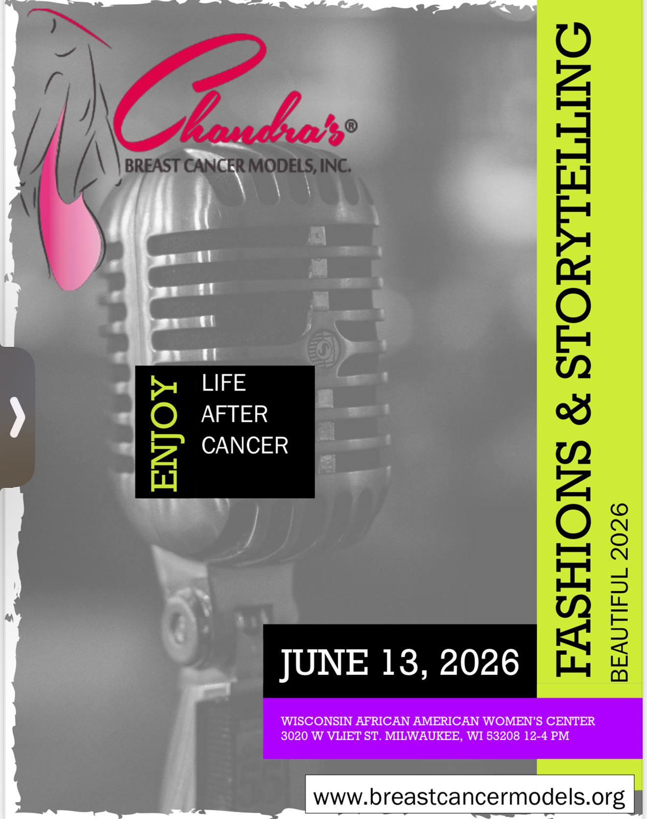 Join us for an unforgettable evening as cancer survivors take the runway and the mic, sharing their strength and stories through fashion and spoken words. This one-of-a-kind event brings together healing, creativity, and community.